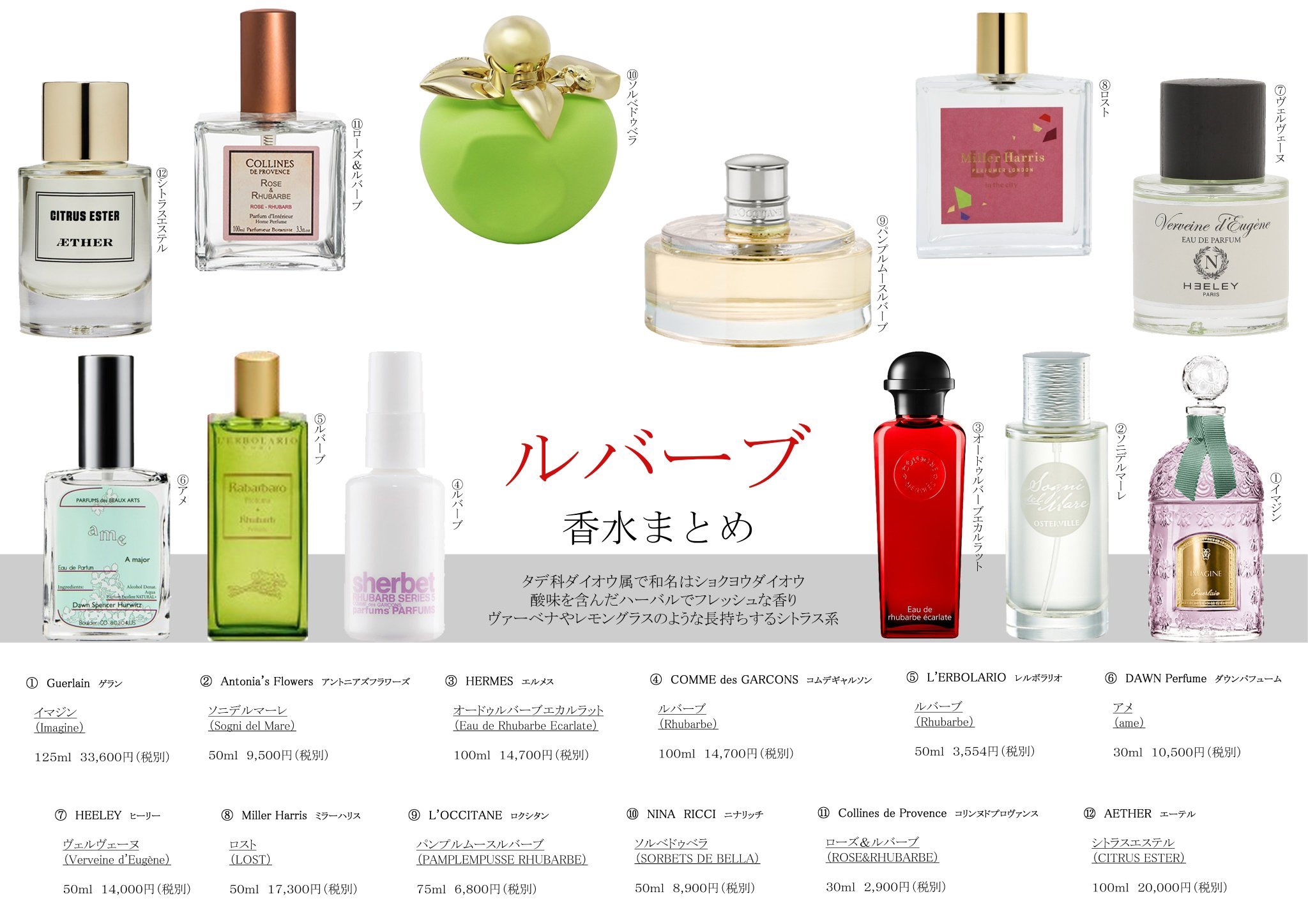 ターコイズグリーン ルバーブの香水まとめです 正確にはルバーブ要素がある香り物まとめ 大好きな香りです エネルギッシュな香りが爽やかさと活力を与えてくれます シトラス系ほど鋭利ではないのにさっぱりとした鼻感触は心地よいですね T Co